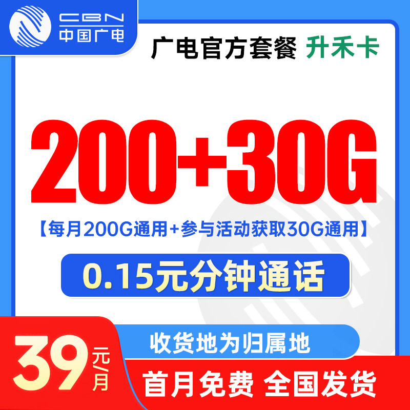 【全国发货】广电升禾卡 39元/月200G全国通用流量