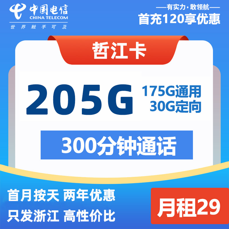 【浙江专属】联通浙青卡29元150G通用+100分钟语音通话