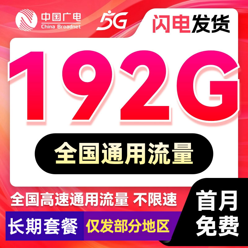 【仅发湖南、陕西、江西】广电升卿卡 29元192G通用流量