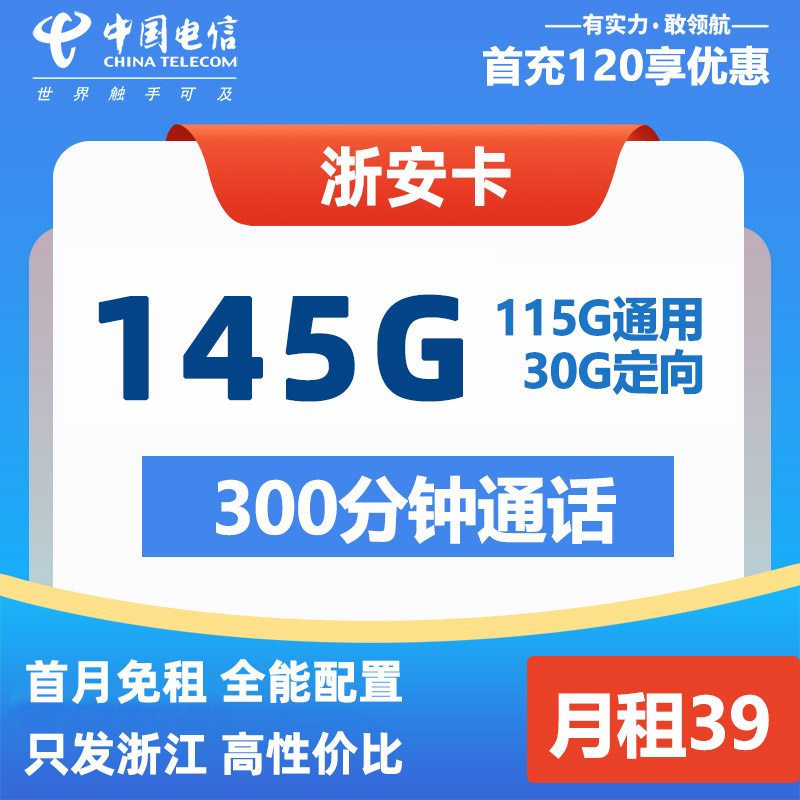 【浙江专属】联通浙青卡29元150G通用+100分钟语音通话